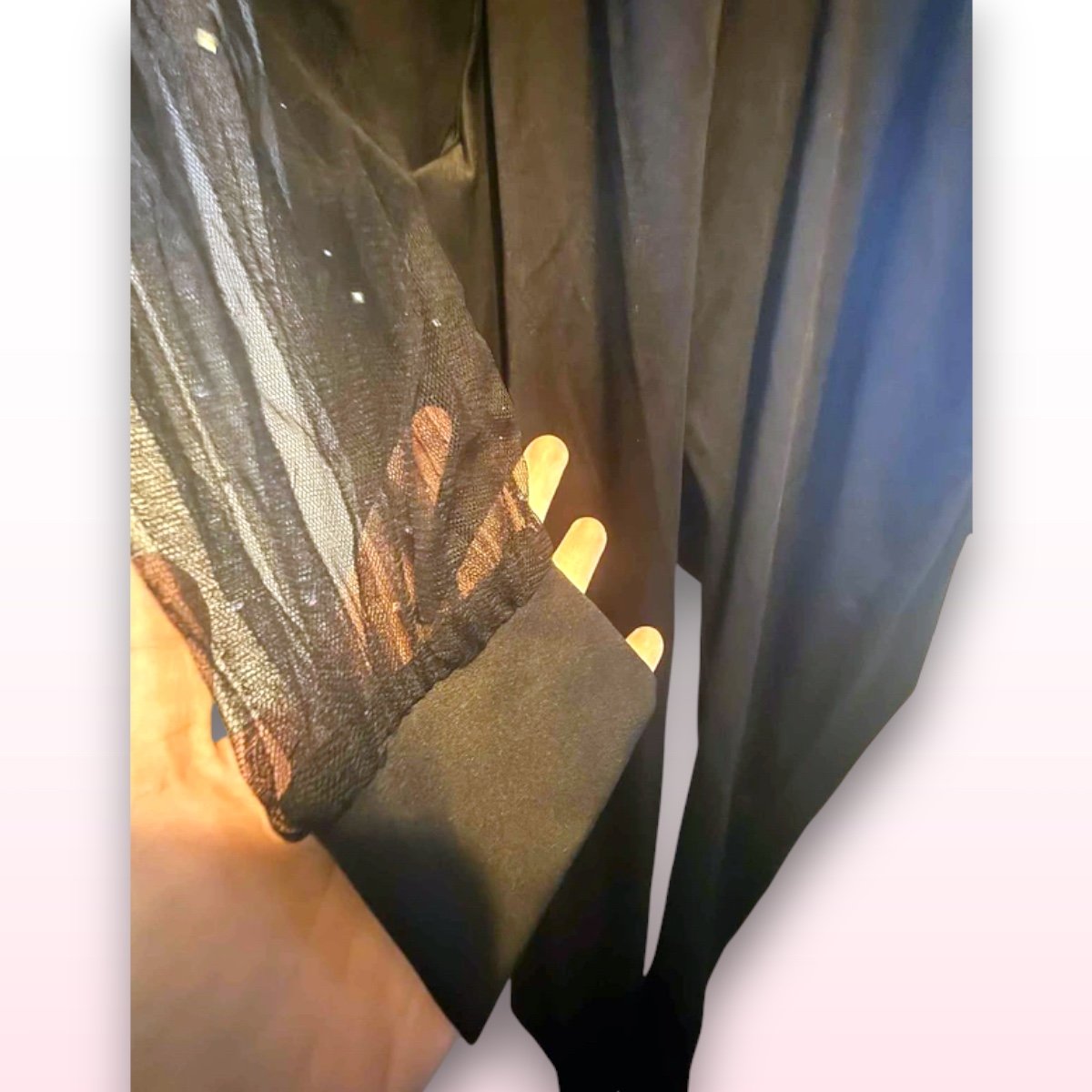 Sheer See-Through Sleeves and overlay Satin Feel Trousers with Pockets