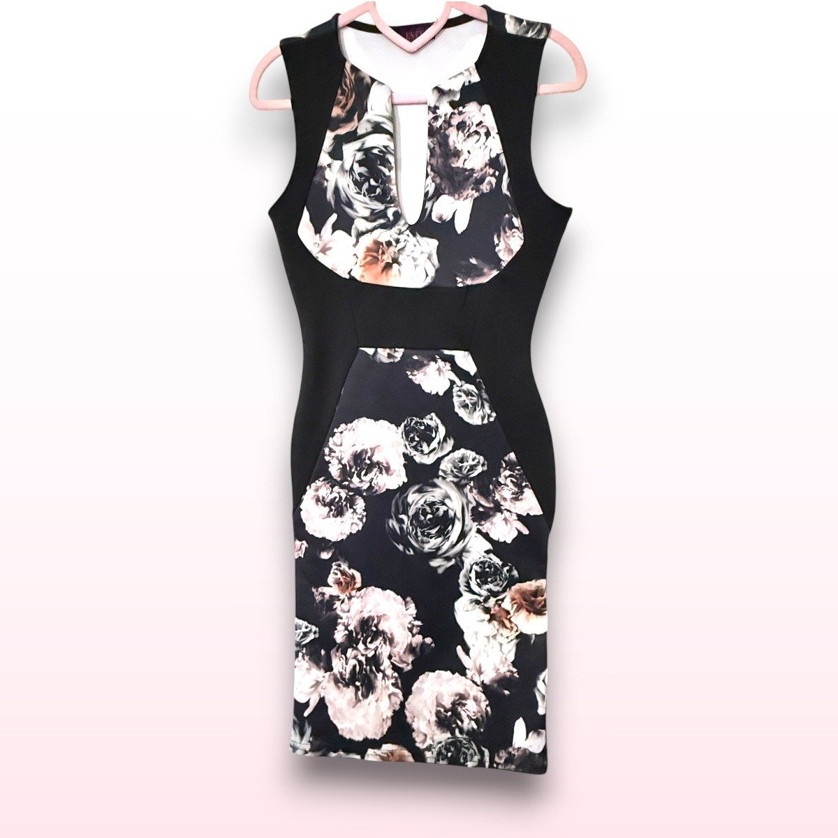 Absolutely gorgeous black and floral bodycon dress – such a flattering, elegant piece. The black side panels create that beautiful pulled-in silhouette and the print is really striking without being over the top.