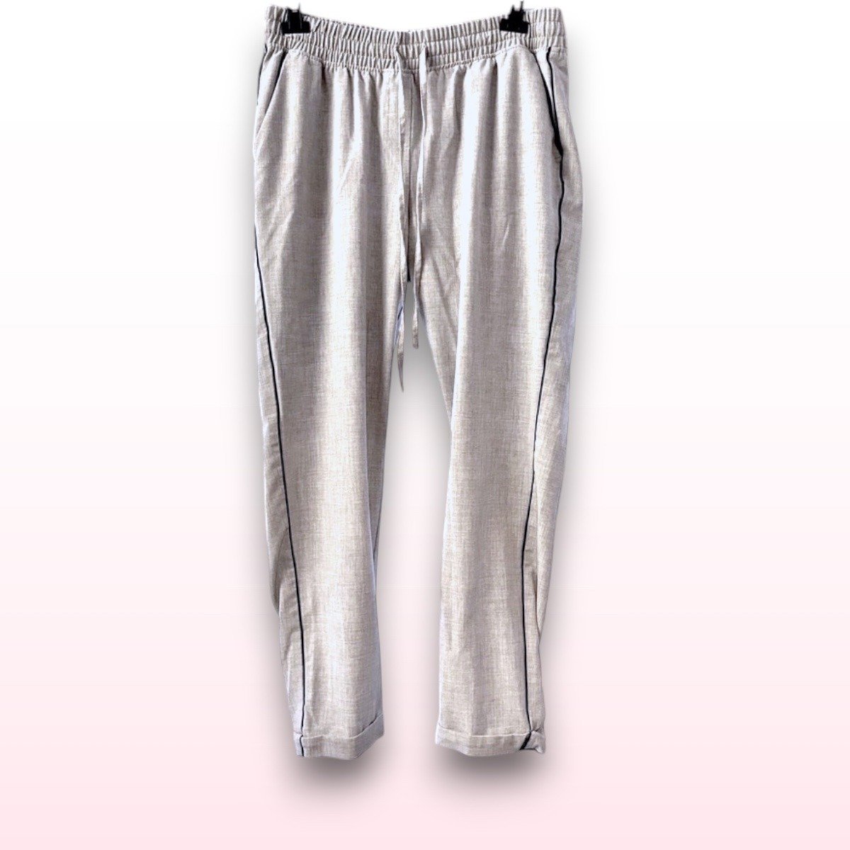 Introducing the elegant grey trousers from Next, perfect for any occasion. These trousers feature a subtle black line running down the length, adding a touch of sophistication to your outfit.