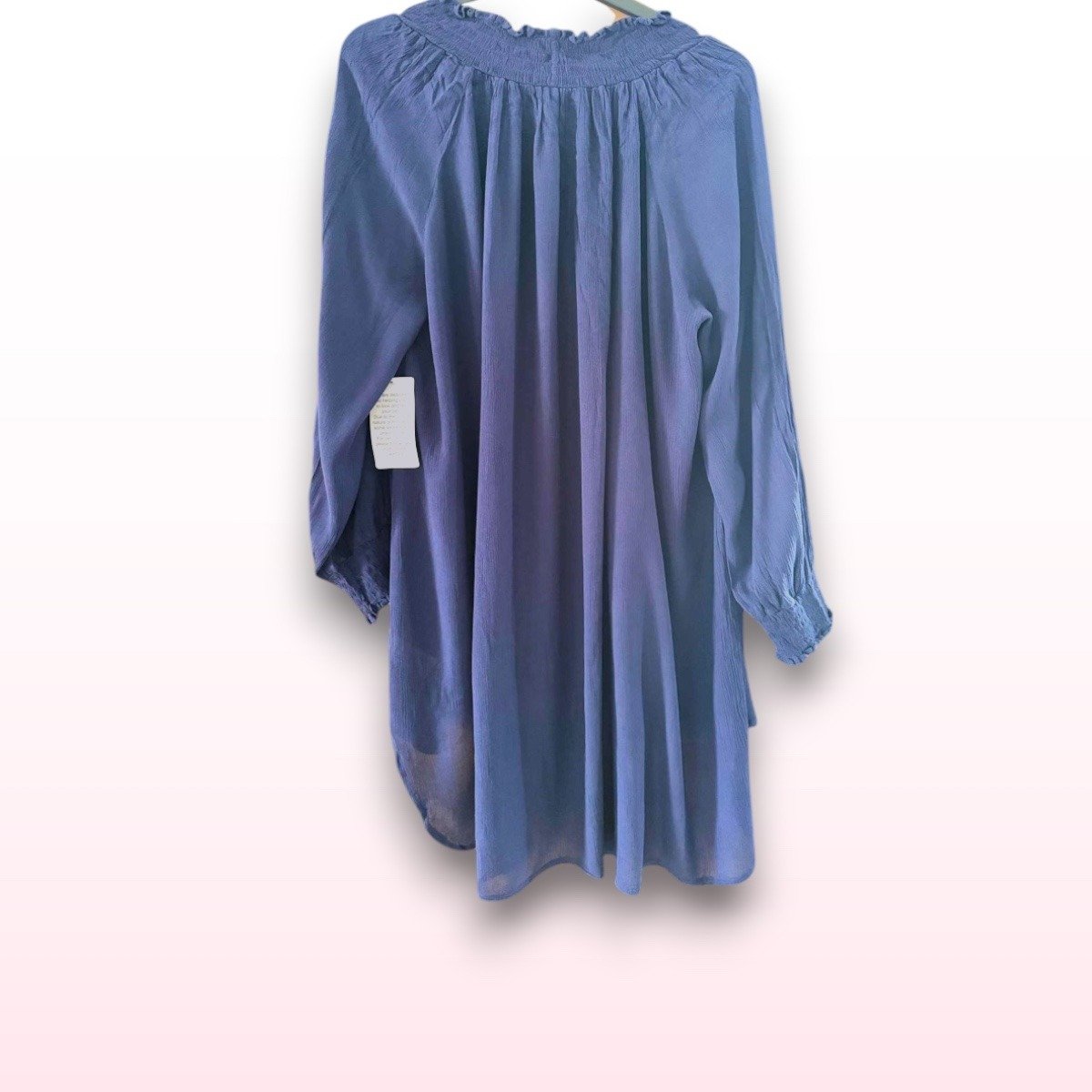 Style: Relaxed tunic with long sleeves and tassel tie front